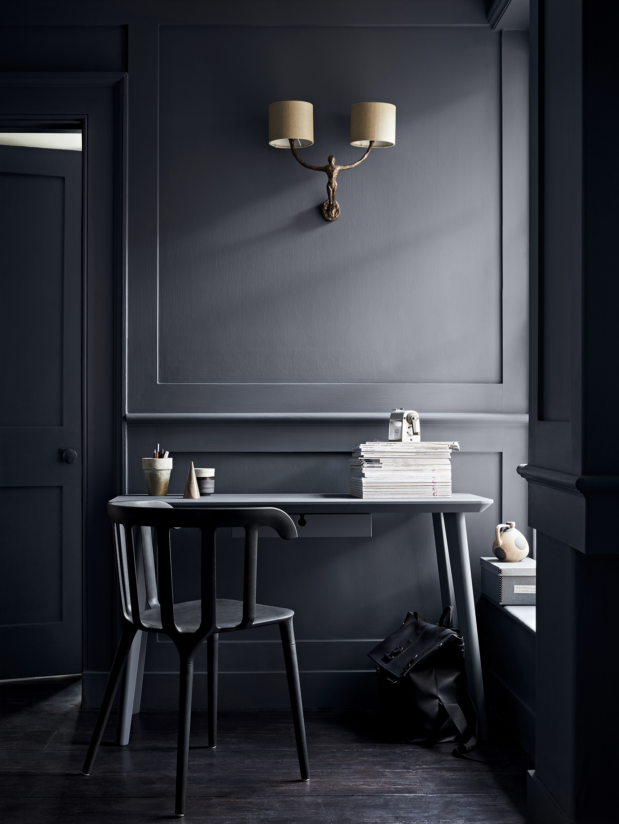 Dark grey can make a wonderful shade for a home office, helping to bring walls in and create a cocooning space that focuses the mind.