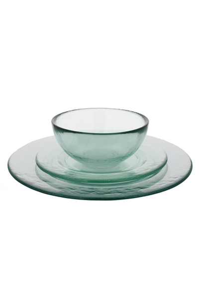 If you want a classic look, but don't want to opt for white, then a glass dinnerware set is perfect for keeping to convention while keeping your personal style. This set is made in Valencia, Spain from recycled glass, making this a sustainable purchase too. These glass plates would be excellent for outside use, and complement a garden dining table perfectly.