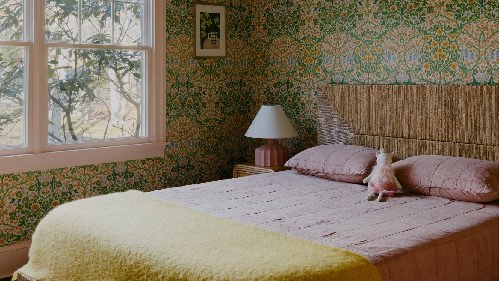 Rather than committing to bold, overtly kids' room color ideas throughout the space, lean on natural materials to anchor the space. Wood, linen, wool, and rattan create a calm backdrop, letting playful touches feel deliberate rather than overwhelming.