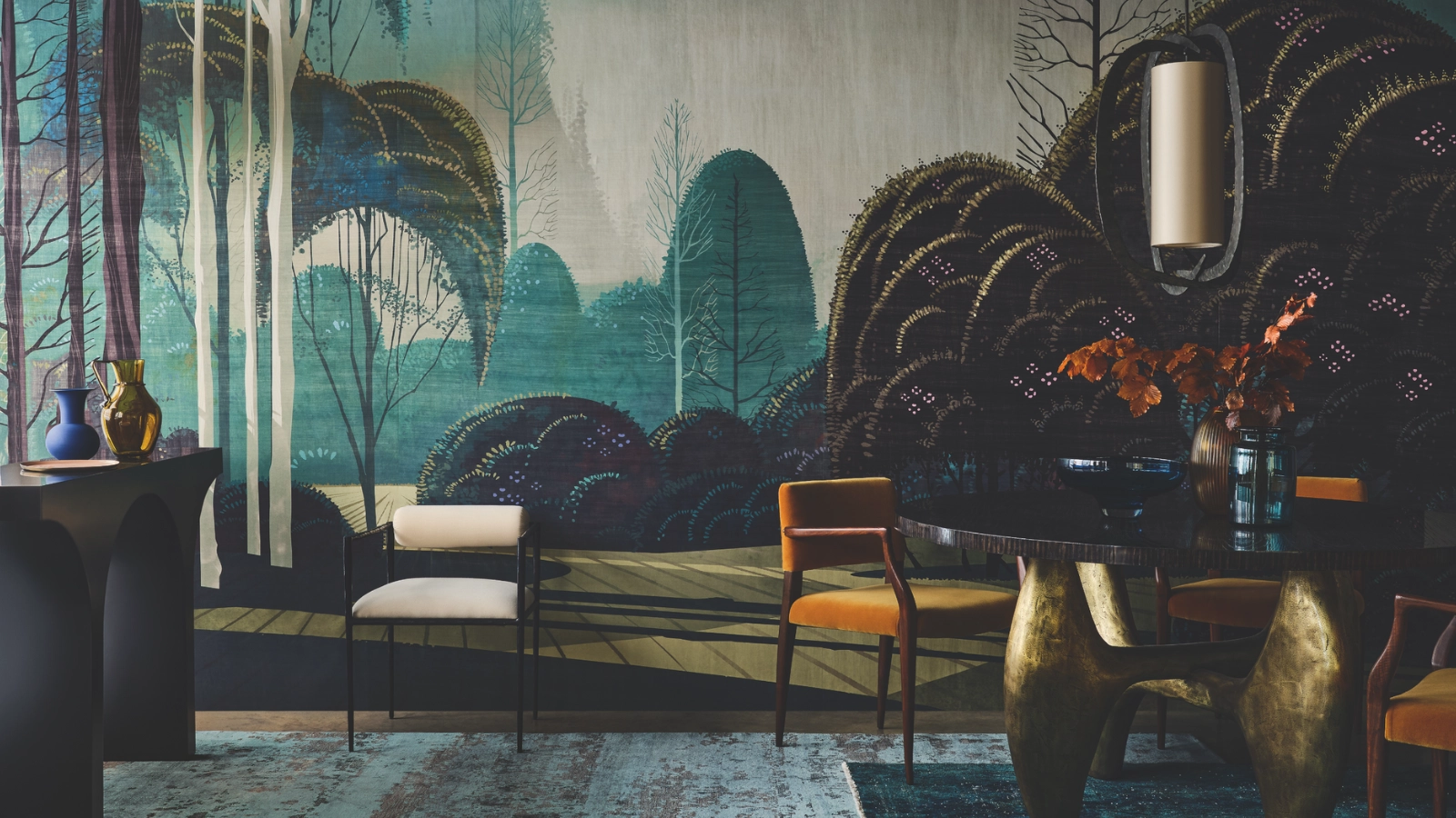 De Gournay: Known for its exquisite hand-painted wallpapers, De Gournay’s murals feel like works of art in themselves. From chinoiserie gardens to panoramic landscapes, each piece is crafted by skilled artisans and tailored to the room, ensuring drama and elegance in equal measure.