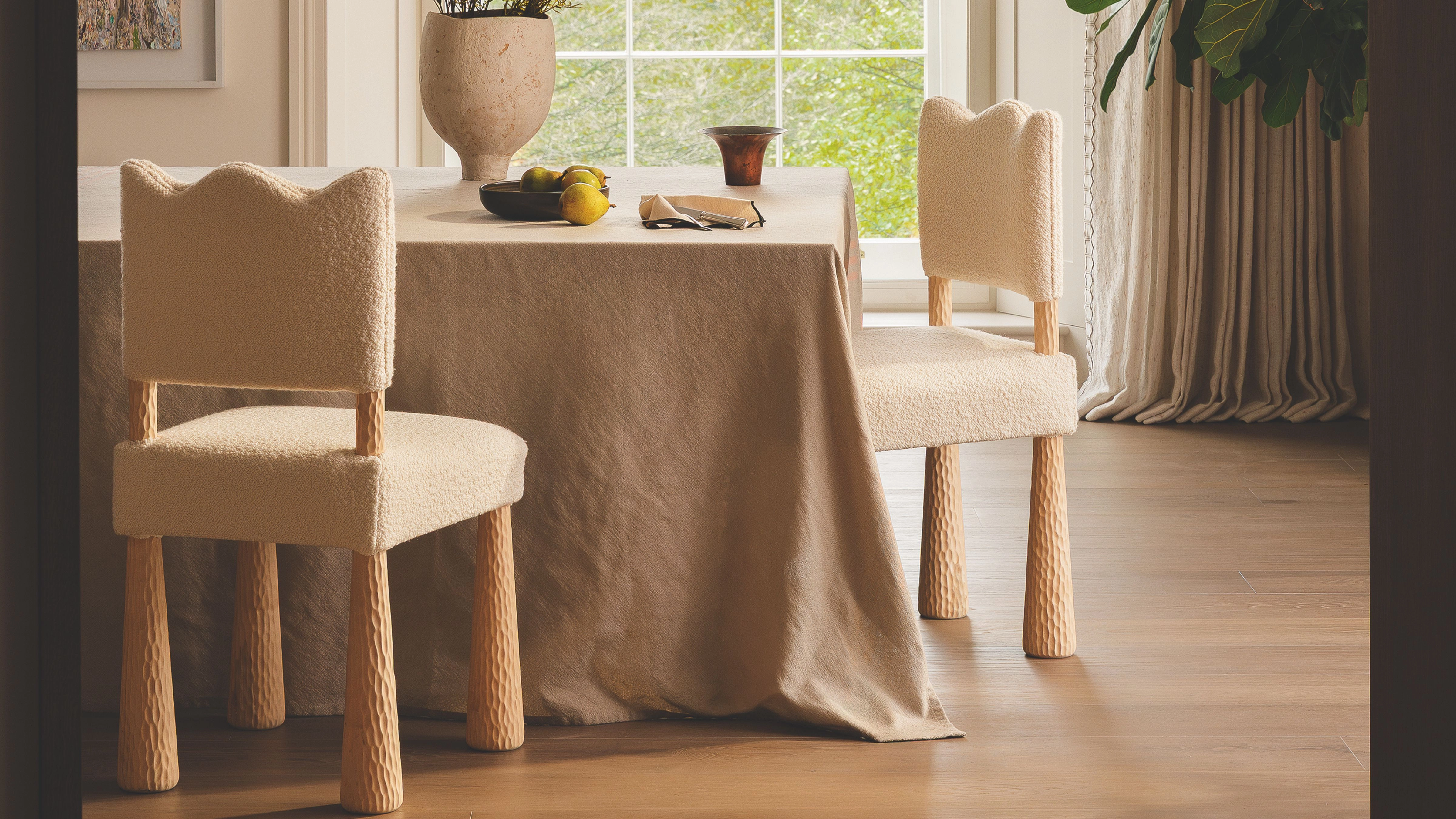 That’s certainly the case inside a London family home by Gunter & Co, where designer Irene Gunter reworked an awkward, aging layout with a lighter touch, tempering antique references with the deliberate whimsy of Studio Sam’s Astoria dining chairs, their wavy backs echoing the controlled irregularity of the Noguchi Museum in New York.