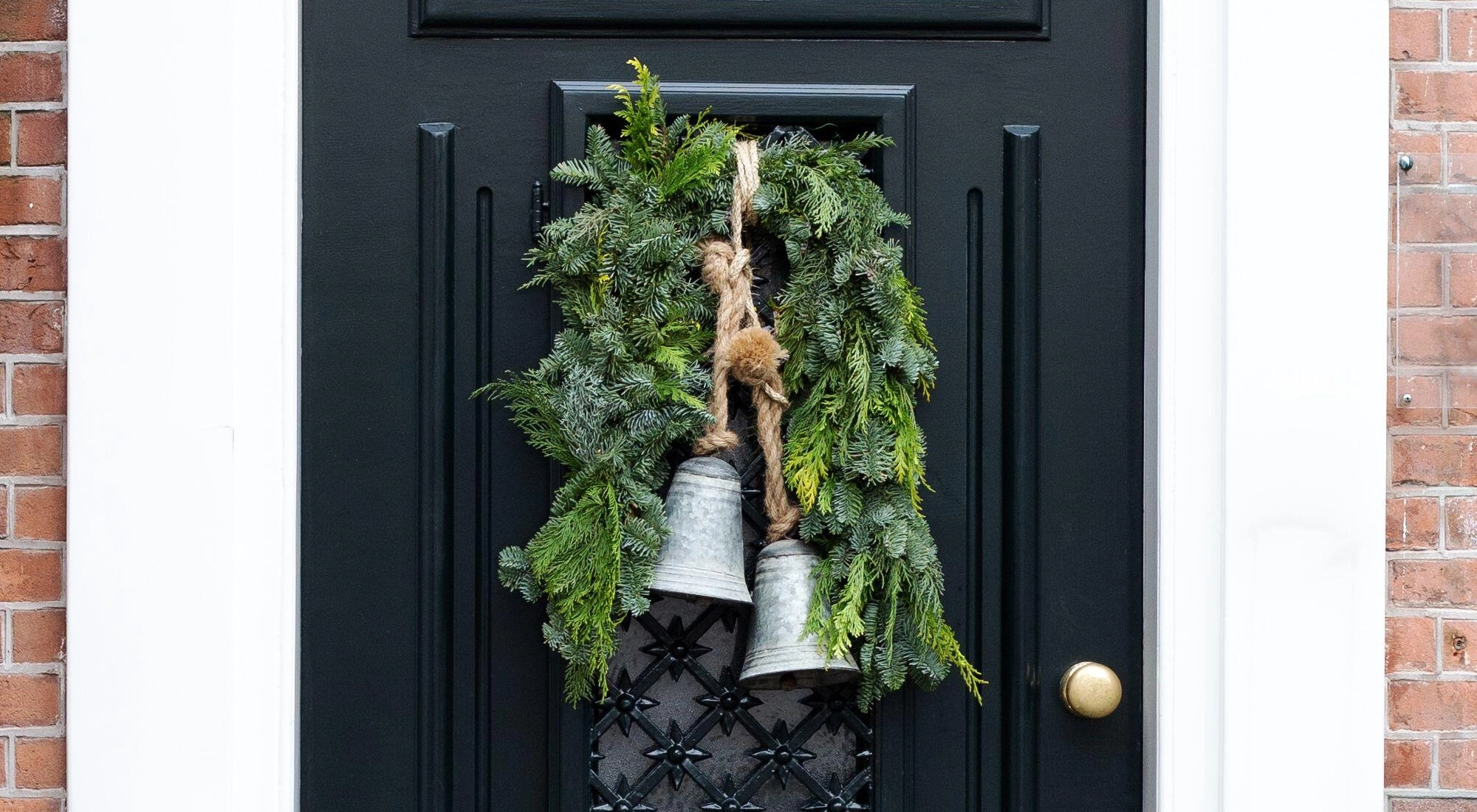 Ditch the wreath and opt for a graceful foliage swag instead. Paired with a cluster of antique-look decorative bells, it's an elegant arrangement that has timeless appeal.
