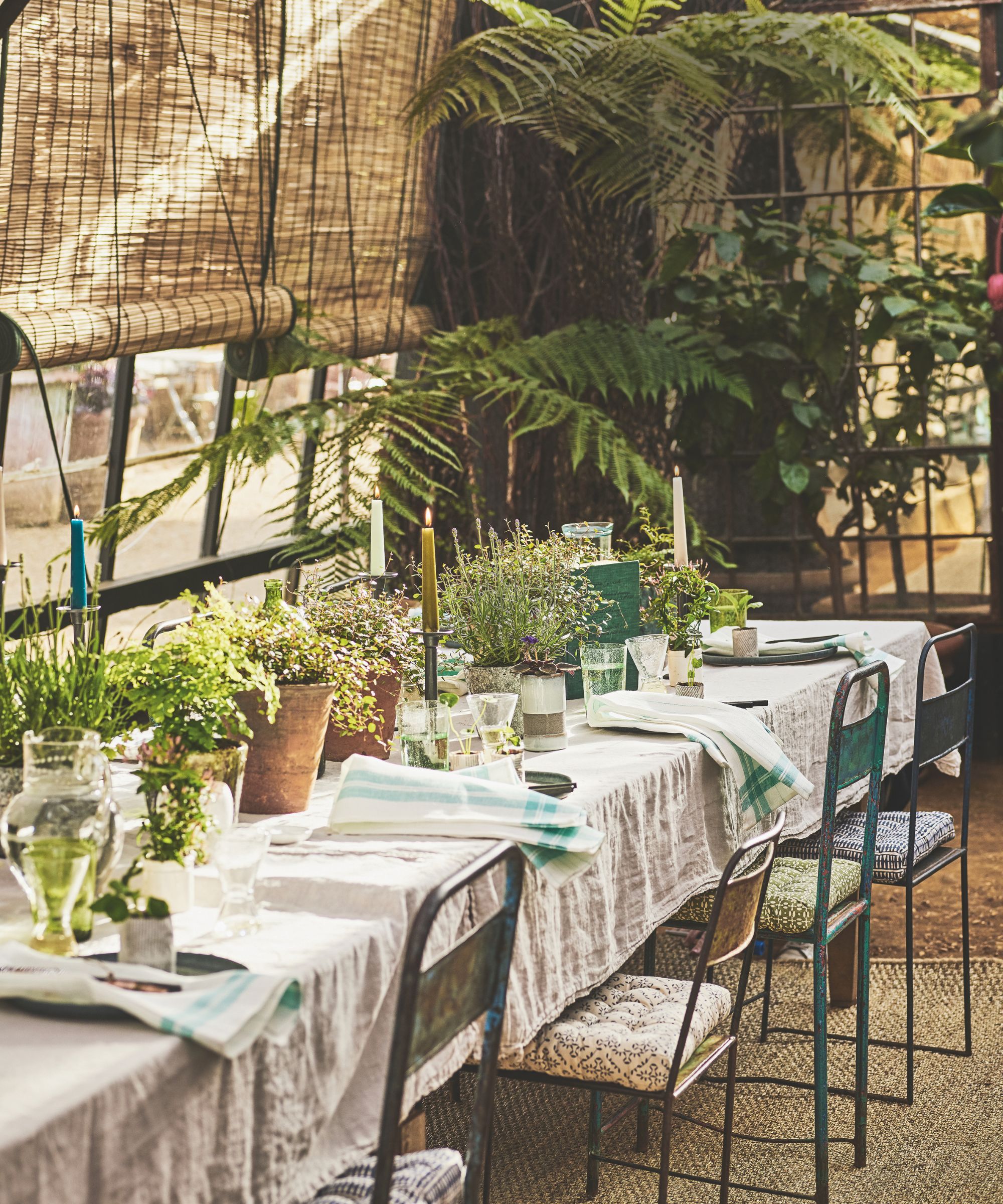 'For an instant garden party atmosphere, roll out an outdoor rug, string up some fun outdoor lights, add a fabulous tablecloth, perfect for bringing a touch of glamour to a weathered garden table, and pick a vase of flowers and garden greenery,' suggests Kit Kemp. 'You’re instantly ready to entertain friends and family in nature’s dining room.'