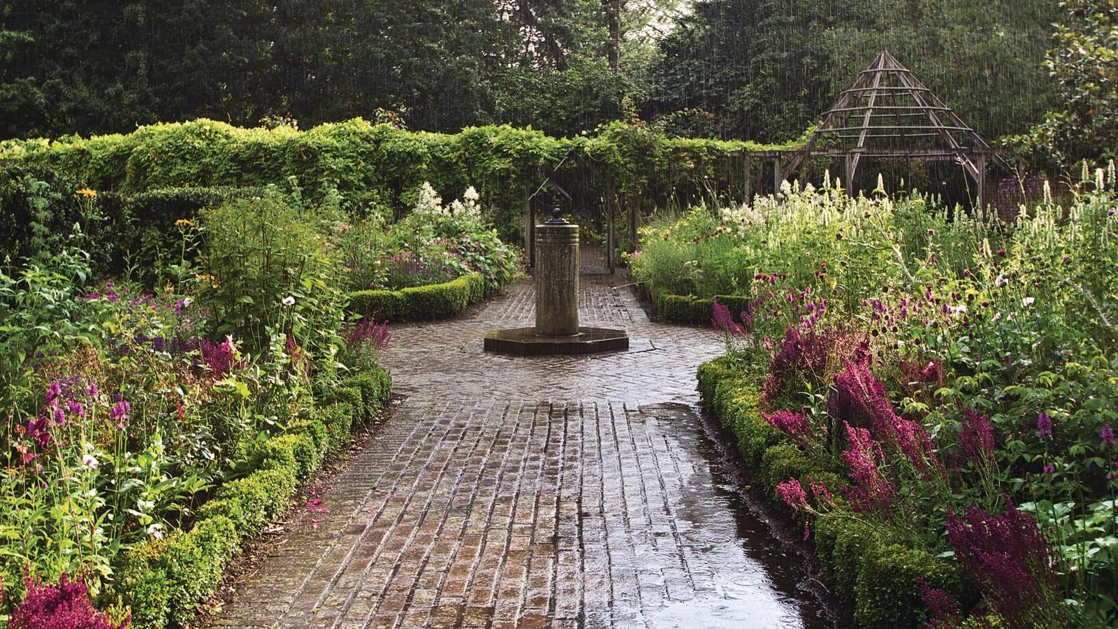 Identify where rain naturally drips in your yard. This could be from sloped roofs, sheds, garden structures and features, and maybe even some trees.