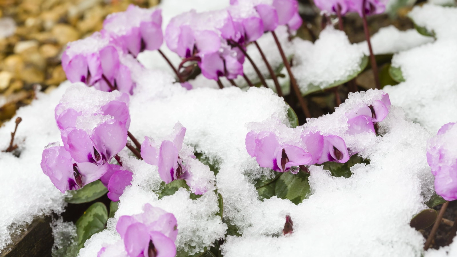 These small perennials are perfect for providing a splash of color in winter, when little else is out. If you like the idea of small white, pink and purple flowers during the colder months, then varieties of Cyclamen coum are perfect for this.