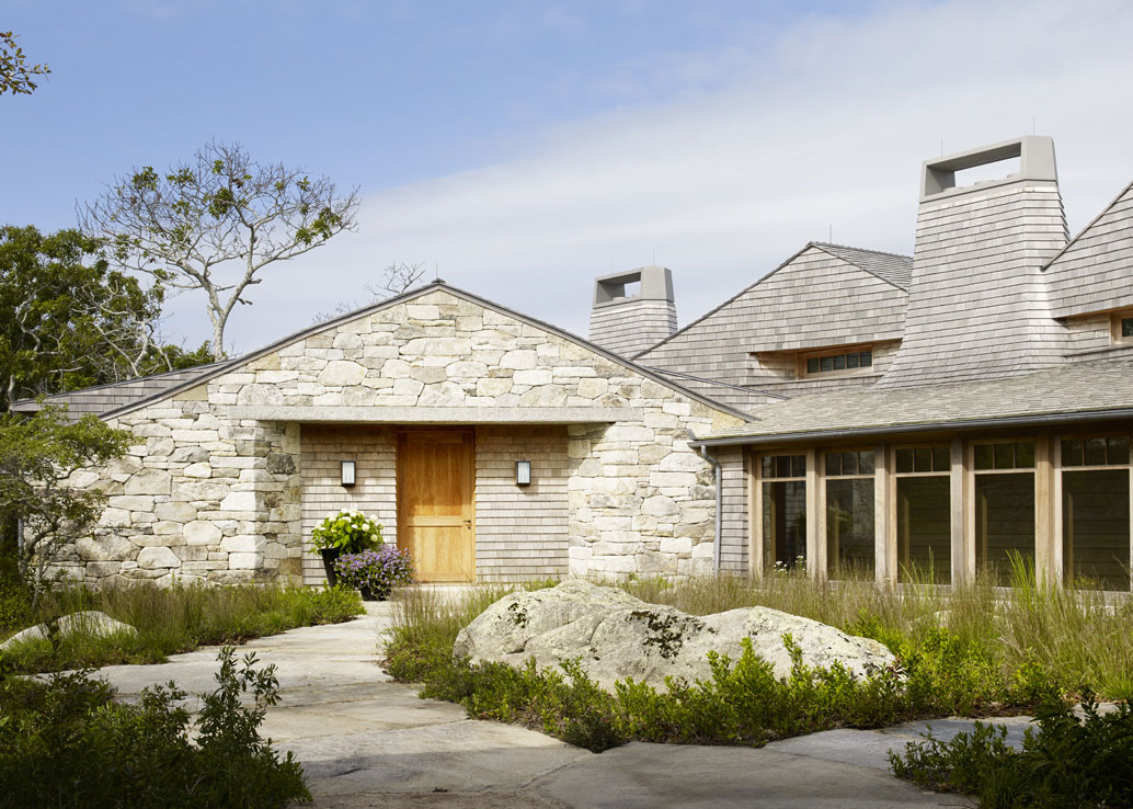 At the California home by Jessica Risko Smith, above, the stonework details on the front porch columns are carried through the front path and front garden wall ideas.