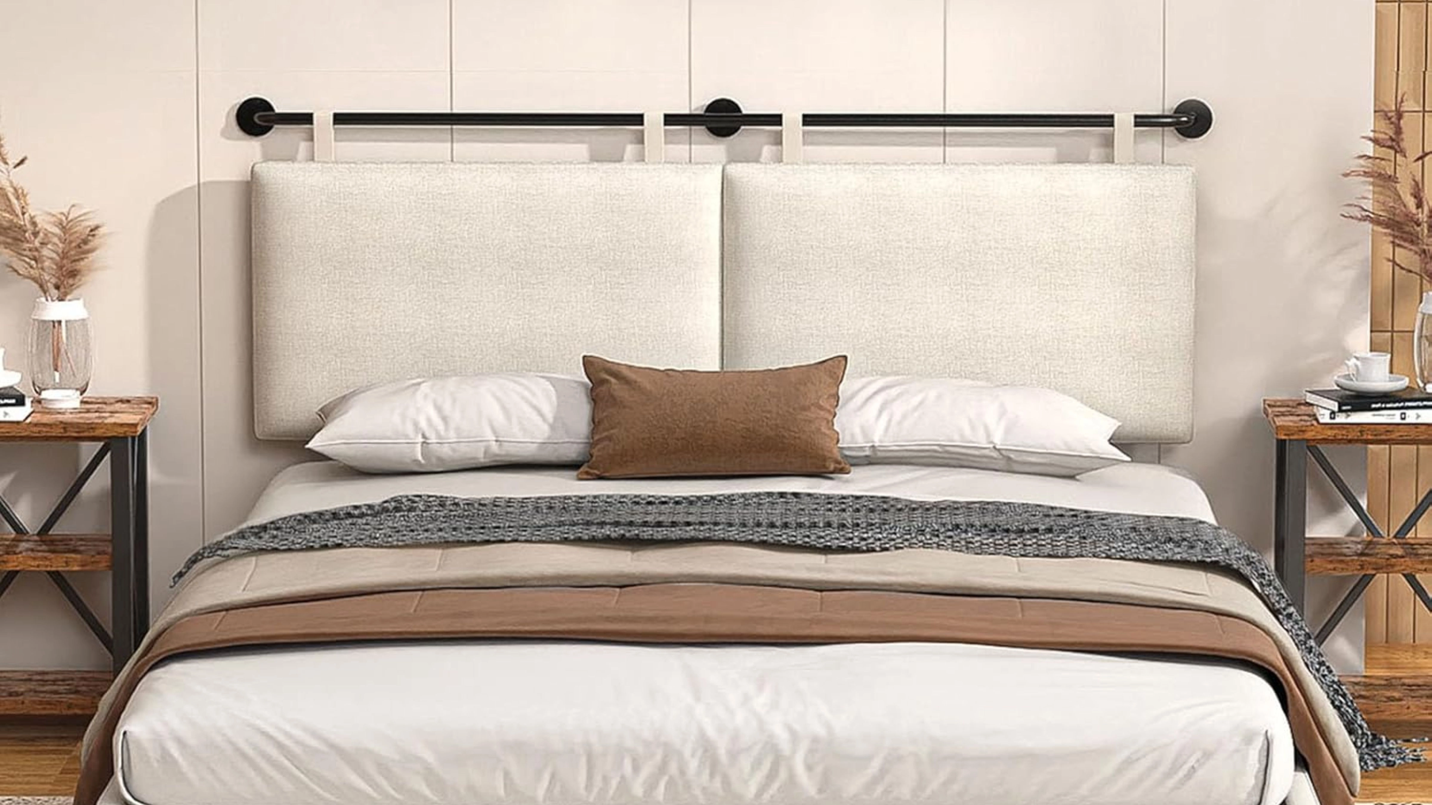 I stumbled on an Amazon find that delivers the best of both worlds: a hanging headboard. It gives you just the cushy part you need to lean back on, plus the bed-width framing that instantly makes a bedroom feel cozier, more considered. And it’s $109.99.