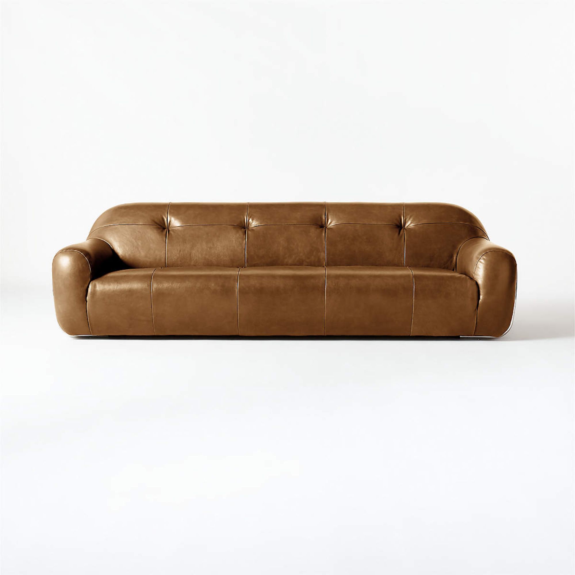 Opting for a retro camel couch will certainly enhance the vintage look, so it's an especially good material choice if your style leans towards mid-century modern. If you prefer a more contemporary look, opt for a similar style to the one above with a curved silhouette.