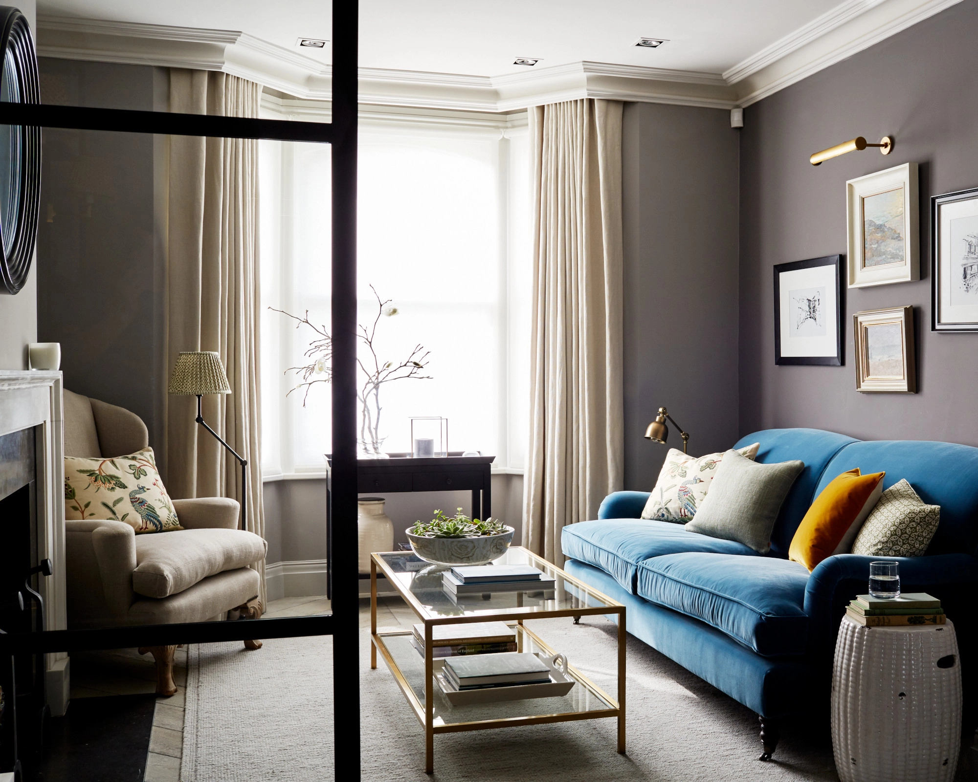 After this, for curtains just floating above the floor, you can subtract half an inch from the distance from the rod to the floor, although interior designer Katie Davis of Katie Davis Design says, ‘We prefer a quarter of an inch above the floor for a crisp, tailored look.’