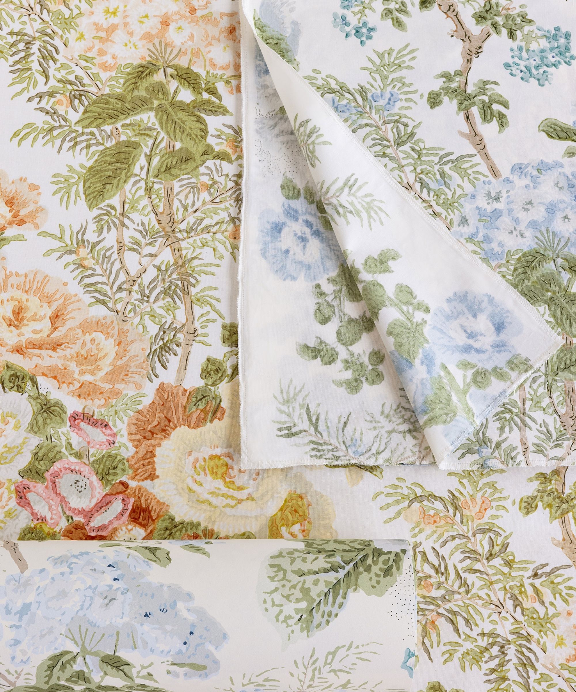 The brand's most iconic hand-block printed patterns Hollyhock and Tree of Life, have had a fresh recoloration, and for the first time, they are also available as wallcoverings. Othermuch-loved designs that have been given a fresh new colorway are Whippets, which is a beautifully finely drawn pattern, and Floral Bouquet, based on a 19th-century print recovered from the archive of a French museum.