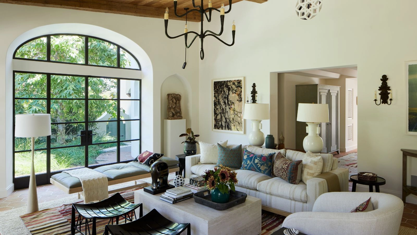From the midcentury daybed to the snug curved armchairs, a mixture of seating styles and shapes gives this light-filled sitting room (designed by Burnham Design) an enviably relaxed feel.