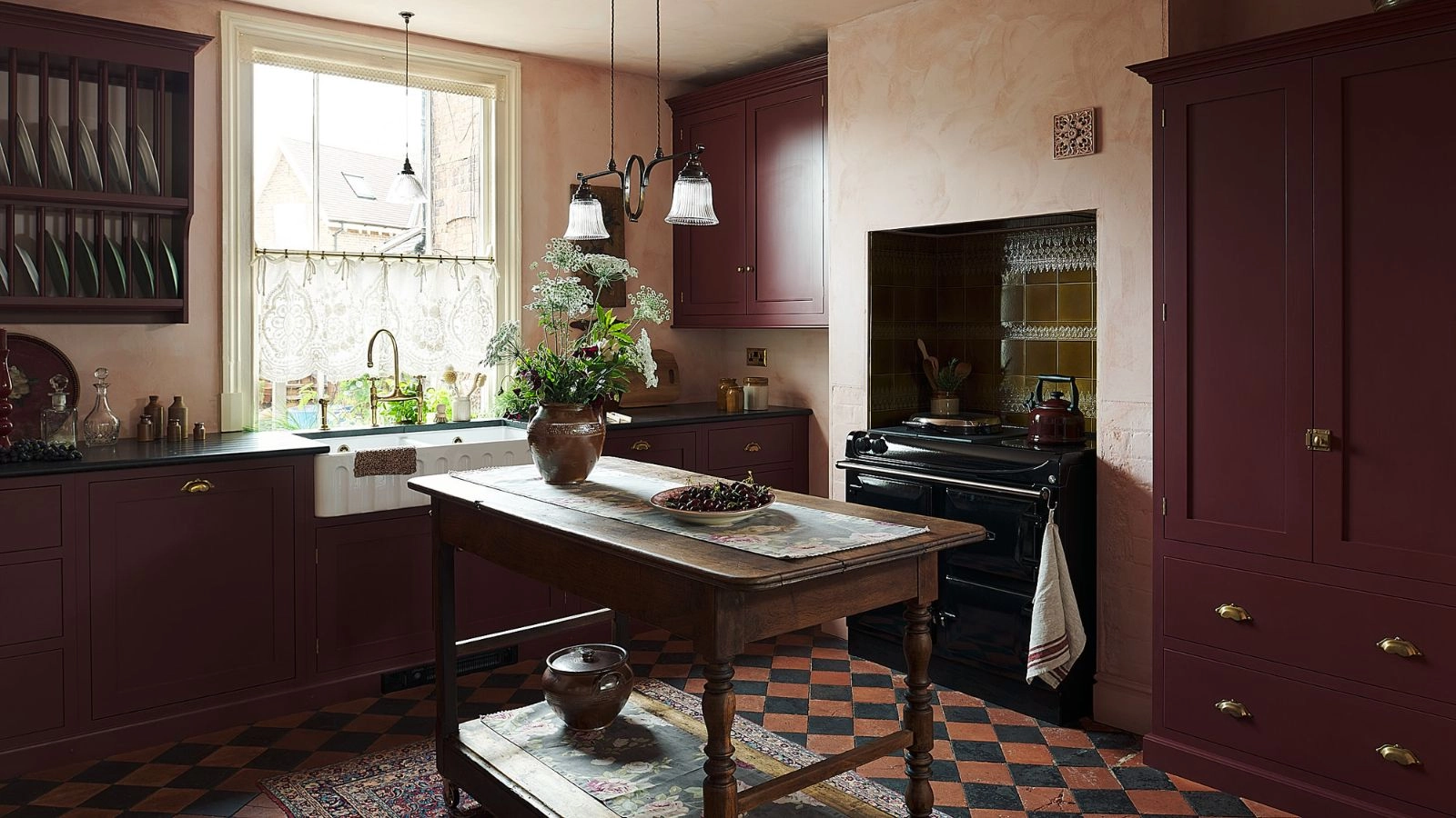 Burgundy kitchens and all their iterations will continue to trend this year, especially in small kitchens. Consider shades such as Benjamin Moore's Classic Burgundy or Farrow & Ball's Deep Reddish Brown.