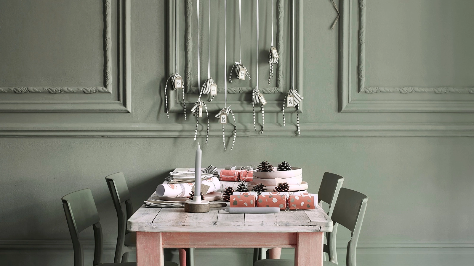 This pack of treat bags is ideal for pegging, pinning, hanging, however you like to fashion your own Diy Advent calendar. I love the festive green shade and pinstripe pattern.