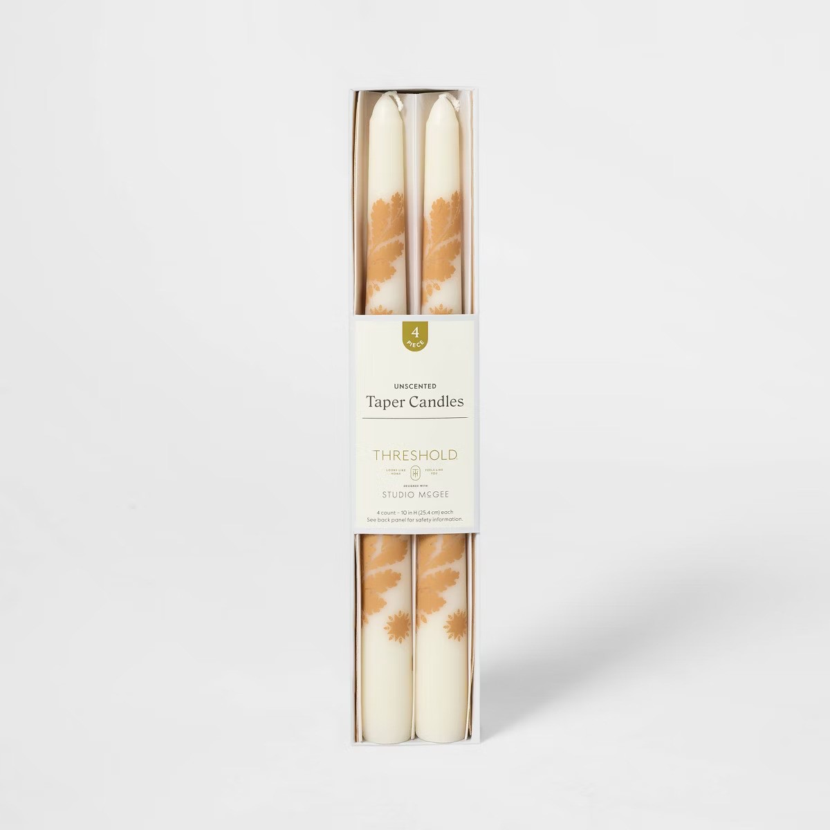 Add a warm, cozy glow to your home with the 4-Piece Taper Candle Set in Cream from Threshold™, designed with Studio McGee. Standing 10.12 inches tall, these unscented candles burn for up to 26 hours and feature four wicks for a steady, inviting flame. Their classic off-white color complements any décor, making them perfect for indoor settings, holiday tables, or everyday ambiance.