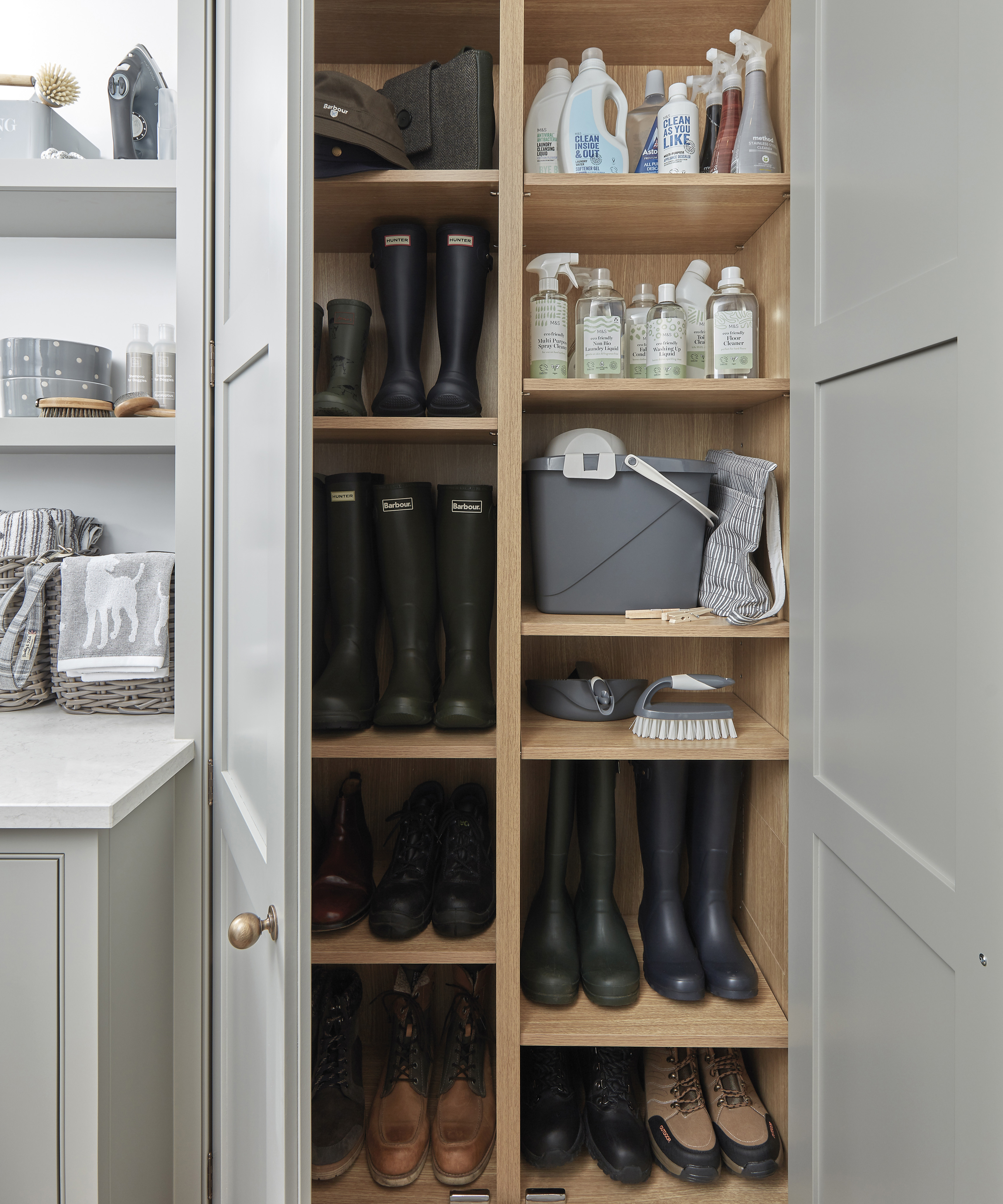 Unlike a conventional utility room, bootilities offer storage room concealed storage space behind tall cabinetry – meaning you can hide your domestic essentials behind bespoke kitchen features.