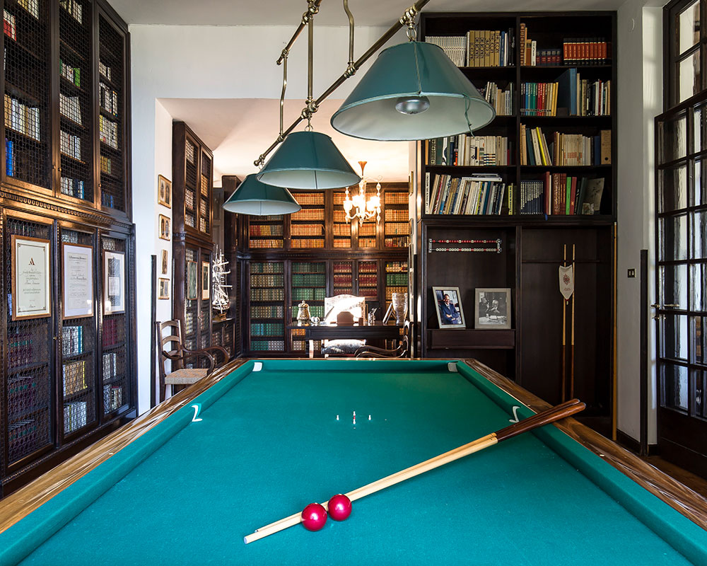Aside from its pink exterior and traditional Italian interiors, a key design aspect is the large fireplace in the main living room, which is covered in the signatures of famous writers and poets, authors and intellectuals.
