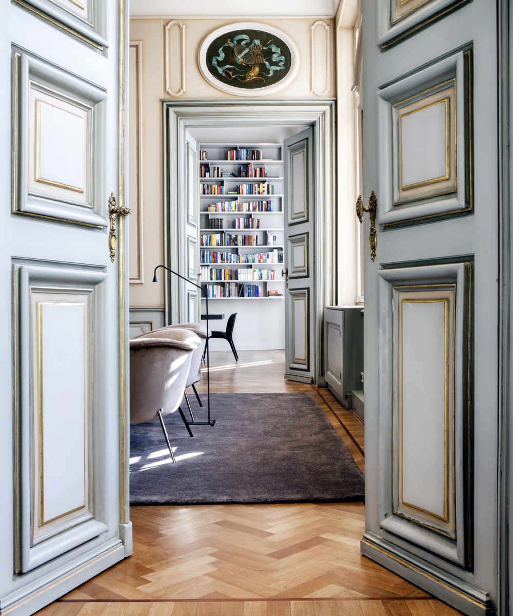 The neutral tones and grey hues of the hotel’s colour palette, combined with a neoclassical mix of marble floors, ionic columns and a sweeping staircase creates a unique set of spaces that take you on a journey; from relaxing in front of a roaring fire surrounded by wood clad walls, to the sleek marble of the bar and the homely parquet wood flooring of the restaurant.