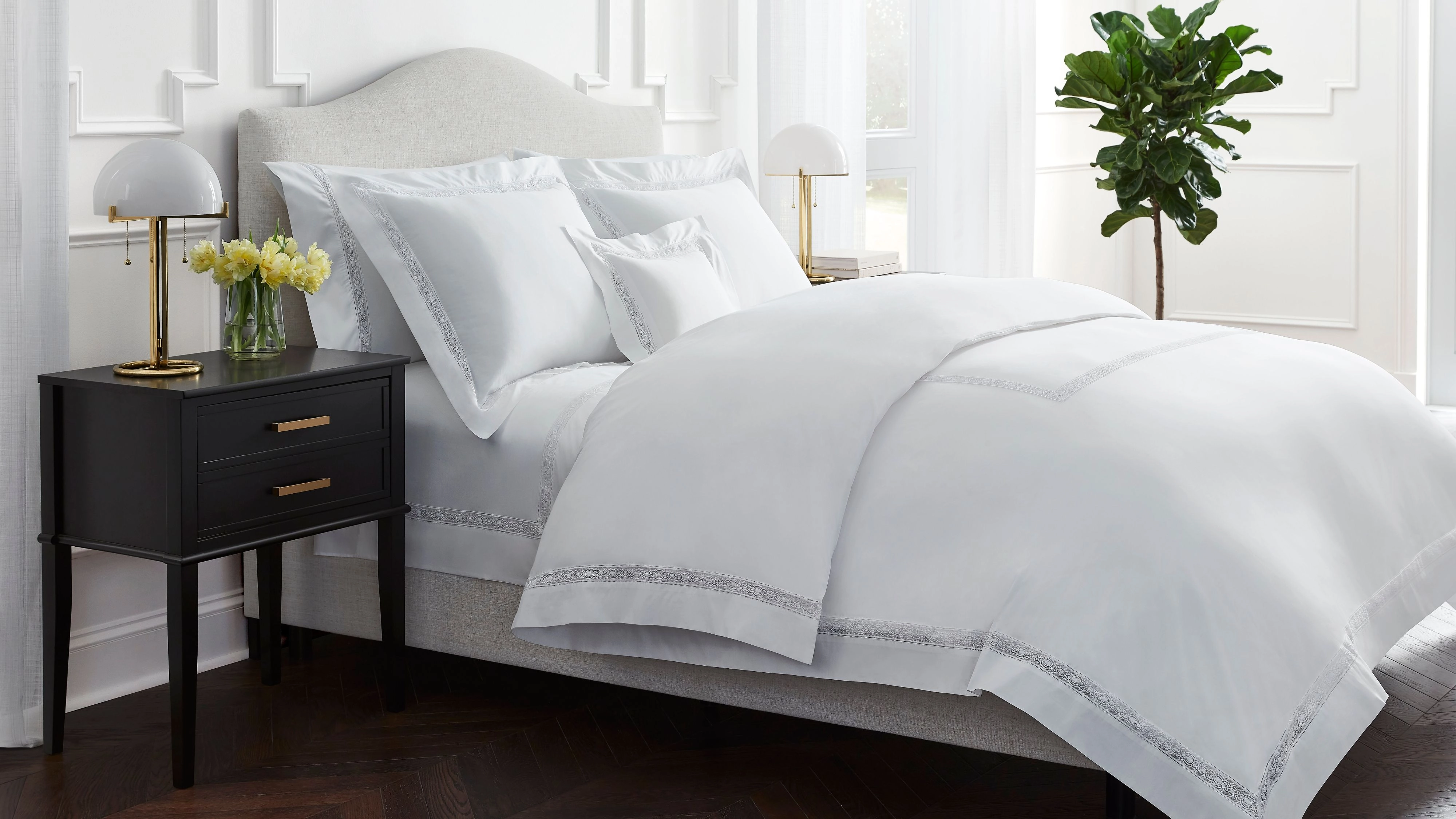 I had long been aware of this ultra-luxury bed sheet lure. But when Sferra debuted the lace edition of its classic Giza 45 Sateen – just as the lace decor revival was becoming top of mind – it felt like a sign. Why not try both?
