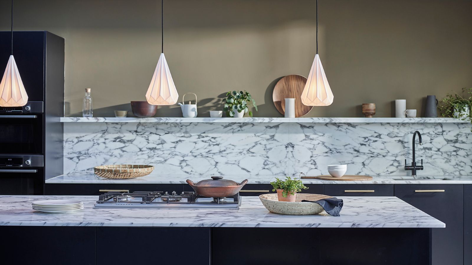 ‘It could be a Barbie pink 48-inch range hood, a stylish central art piece, or an astonishing kitchen island. Play with juxtaposition with your focal piece to really draw the eye.’