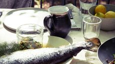 Cooked over the grill or on the fire pit, this whole salmon with preserved lemon relish and olives is easy and impressive